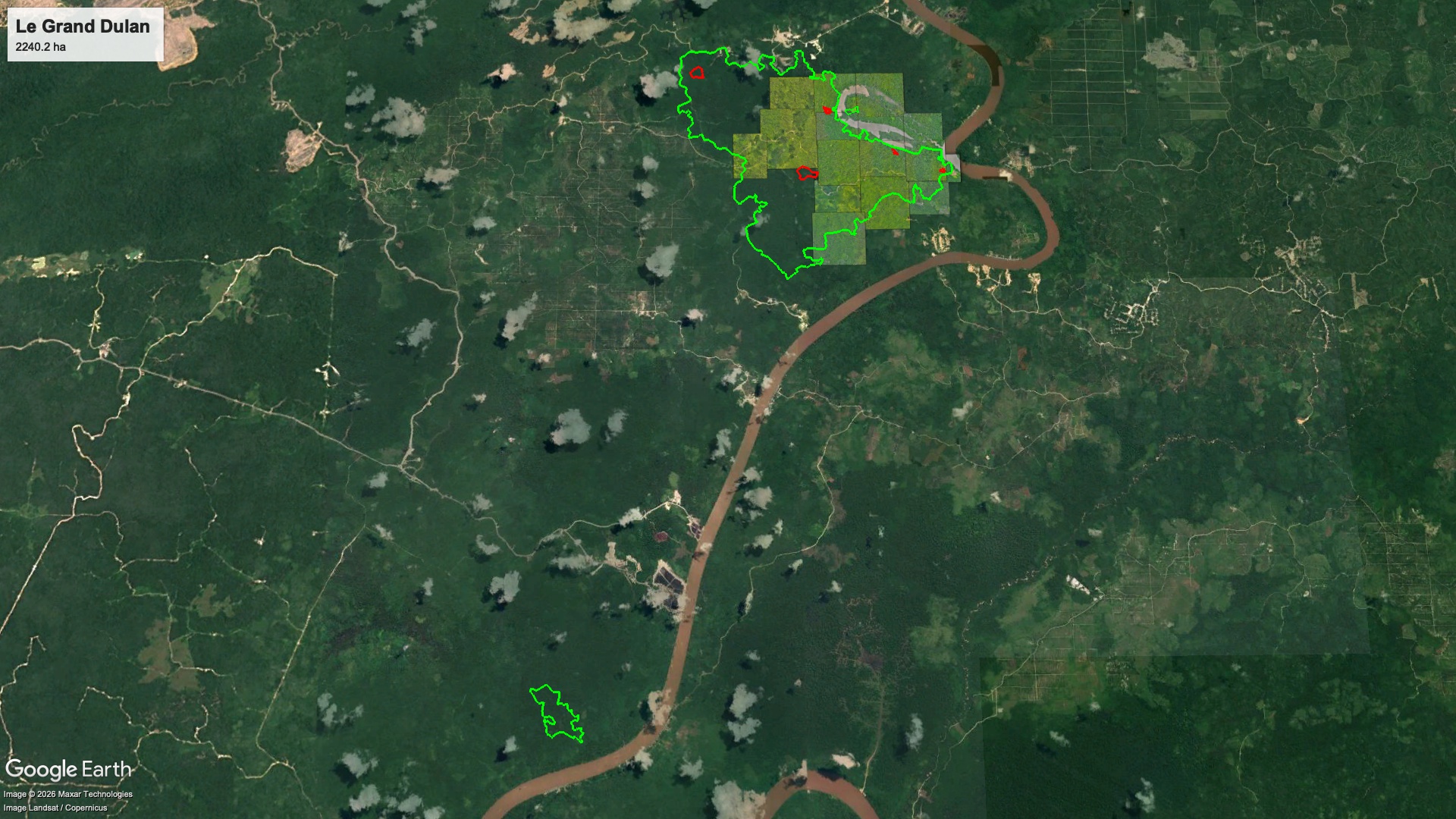 - Otra parte protegida gracias a los amigos de Kalaweit (en amarillo).