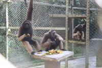Bona a rejoint sa fille Bori dans la grande volière : les deux se sont retrouvées avec des gestes affectueux, Bori embrassant sa maman puis l’épouillant.